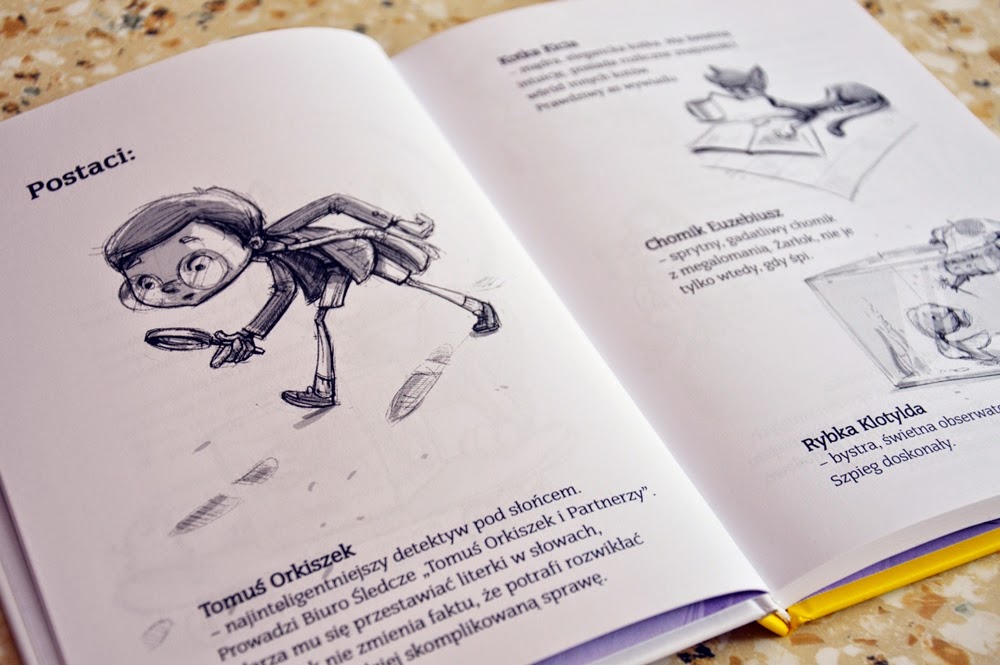 „Tomuś Orkiszek to najinteligentniejszy detektyw pod słońcem. Prowadzi Biuro Śledcze Tomuś Orkiszek i Partnerzy. Zdarza mu się przestawiać literki w słowach, co jednak nie zmienia faktu, że potrafi rozwikłać nawet najbardziej skomplikowaną sprawę.”