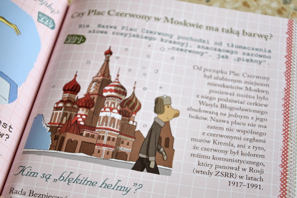 Poznawanie świata za pomocą pytań i odpowiedzi to świetne rozwiązanie dla małych, ciekawskich i głodnych wiedzy dzieci. Teksty są krótkie i dla urozmaicenia pisane wieloma czcionkami. Przy każdej ciekawostce znajduje się ilustracja, niejednokrotnie dość zabawna. Odpowiedzi na pytanie napisane są prostym i zrozumiałym językiem.