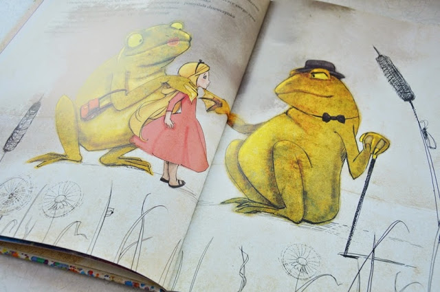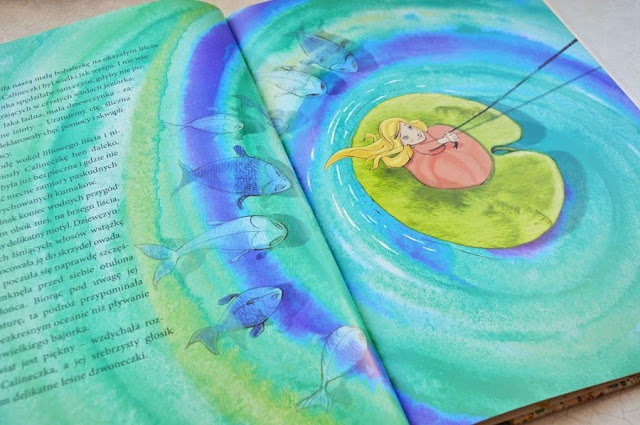 Zapewne Waszą uwagę przyciągają piękne ilustracje. Powiedziałabym, że jest to wręcz ekskluzywne wydanie baśni o Calineczce, w przystępnej cenie. Wielkoformatowe wydanie, bo aż a formacie A3, wysokogatunkowy papier i twarda oprawa dostarczą Wam wspaniałych doznań estetycznych. Nawet jeśli już macie inne wydanie Calineczki to warte jest Waszej uwagi.