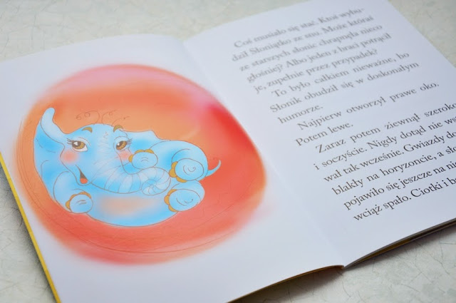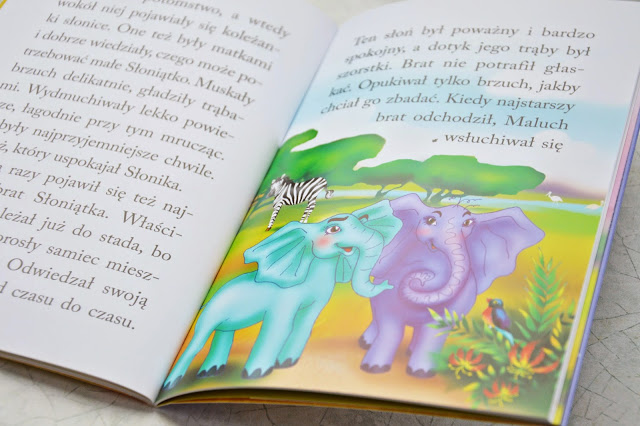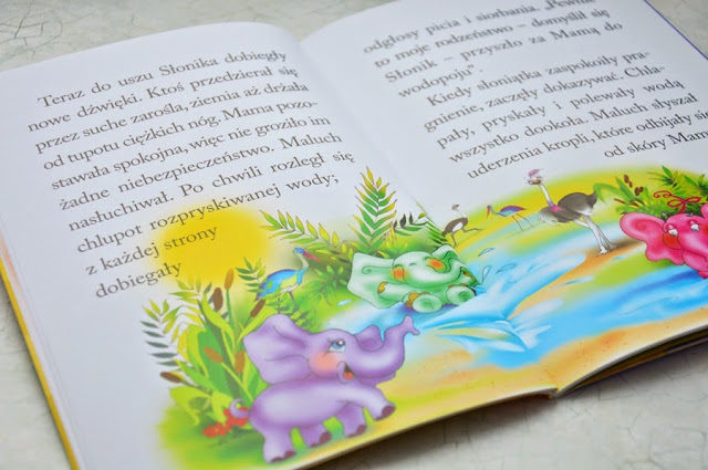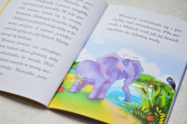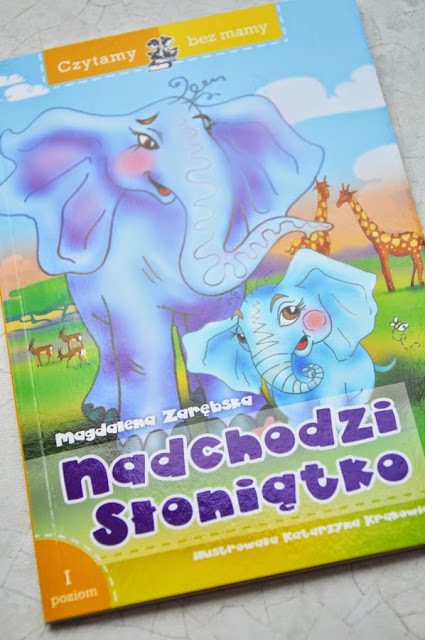 Pierwsza pozycja, którą Wam przedstawię, Nadchodzi słoniątko, to jedna z trzech książek pierwszego poziomu, przeznaczona dla dzieci, które zaczynają czytać. Duża czcionka i spore odstępy między wierszami są tu zdecydowanie na miejscu. Dodatkowo lekturę umilą dziecku delikatne kolorowe ilustracje przedstawiające sceny z historii małego słoniątka.
