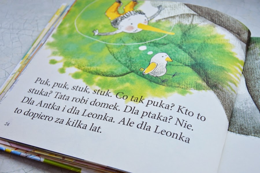 Wizualnie estetyka książki jest dość zbliżona do „starego” elementarza. Poza tym znajdziemy w niej też to, co ja bardzo lubiłam jako dziecko, a mianowicie rysunki zastępujące słowo w tekście. Zawsze lubiłam łamigłówki i rebusy, nic więc dziwnego, że te czytanki wyjątkowo przypadły mi do gustu. Żałuję, że nie mam mojego elementarza z dzieciństwa. Z pewnością to wydanie pozostanie z nami na lata i posłuży kilku pokoleniom.