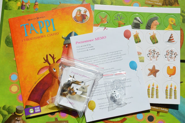 Bardzo nietypowe wydanie książki. Dlaczego nietypowe? Wraz z książką Tappi i urodzinowe ciasto otrzymujemy w zestawie dwie rewelacyjne gry! Tak, dobrze czytacie. Tym razem będziecie mieli okazję świetnie się bawić nie tylko przeżywając wspólnie z Tappim jego przygody, ale również podczas grania w memo i grę planszową, które zostały przygotowane specjalnie z okazji urodzin Tappiego. Macie ochotę zajrzeć co w sobie kryje to pudełko? Zapraszam!