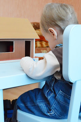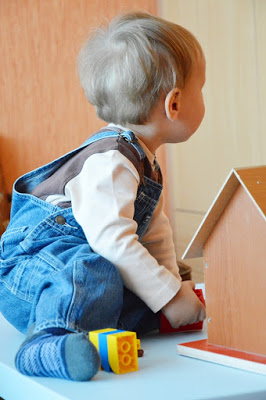Dość narzekania. Pora na odrobinę optymizmu. Oluś jakiś czas temu dostał od dziadka pierwszy domek do zabawy. Zobaczcie jak mu się spodobał. 🙂
