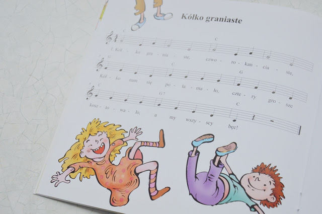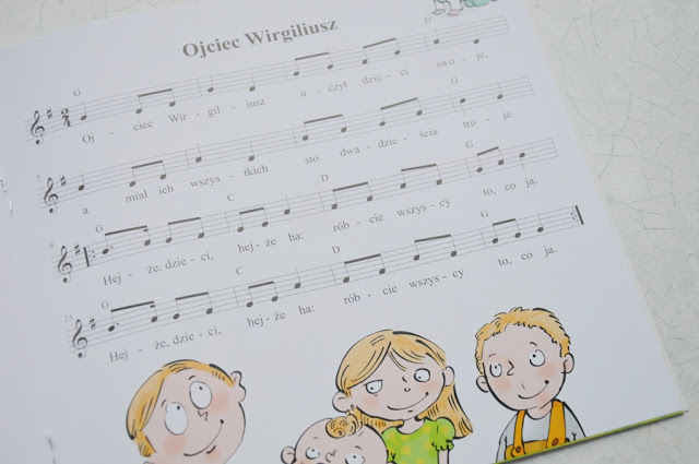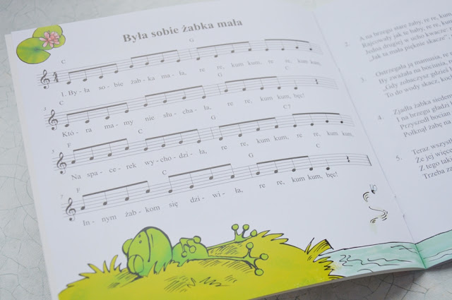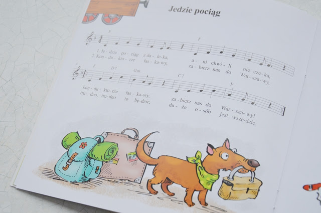 Tekst wszystkich trzynastu piosenek wraz z zapisem nutowym znajduje się w niewielkiej książeczce. Bardzo podoba mi się ta forma. Wolę właśnie takie wydania książka + płyta niż same wydania płytowe. Dzięki temu nawet kiedy nie znam zbyt dobrze tekstu mogę się poratować ściągą zawartą w książce. Sama książka jest w miękkiej oprawie, jednak strony wykonane są z dość grubego, śliskiego papieru kredowego, co niewątpliwie jest plusem. Przy tekście i nutach każdej z piosenek znajdziecie adekwatne, piękne dziecięce ilustracje.