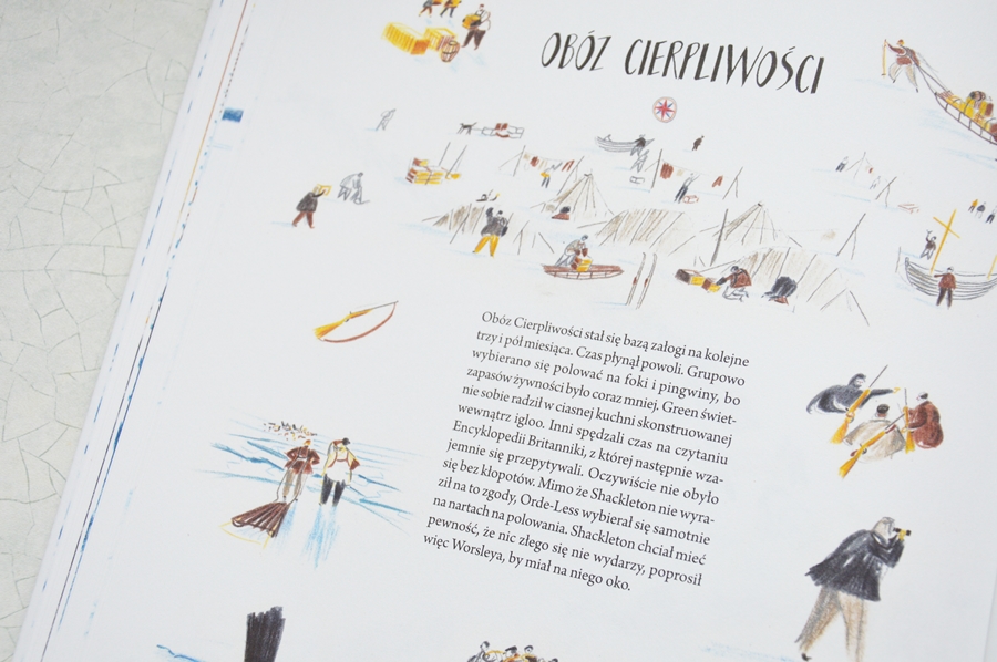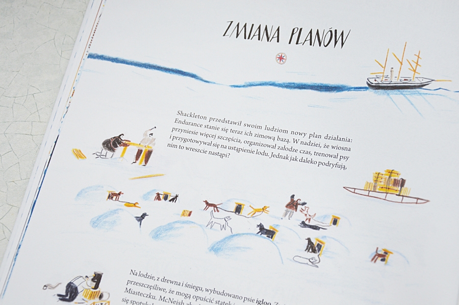 Projekt Przygody z książką to akcja mająca na celu szerzenie zamiłowania do książek. Długo zastanawiałam się nad tym jaką, wyjątkową, pozycję Wam dziś pokazać. Wyprawa Schackletona gości już u nas od dawna. Znamy każdy jej zakamarek i ciekawostkę z nią związaną. Zamysł graficzny autora tej pozycji jest niezwykle niespotykany. Całokształt przedstawienia historii ekspedycji to istny majstersztyk! Niewątpliwie jest to perełka nie tyle w Olusiowej biblioteczce, co w naszych rodzinnych, wspólnych zbiorach. Zobaczcie sami to książkowe cudo!