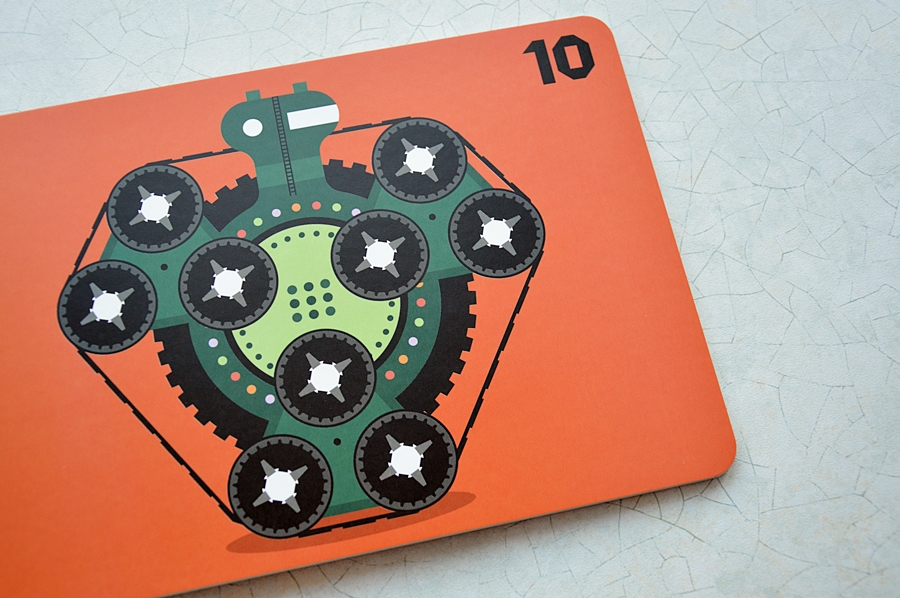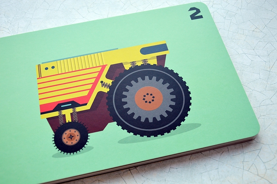 Ktoś zapyta: A gdzie tu matematyka? Jak to gdzie, w liczeniu. 😉 A tak już całkiem na poważnie, Matemoto to książka całokartonowa. Wykonana solidnie, w dość stonowane kolorystyce i z prostymi graficznymi oraz mocno zarysowanymi rysunkami. Nie znajdziecie tu „bajeranckich” obrazków 3D. Znajdziecie tu natomiast niesamowite twory składające się z rozmaitych połączeń materiałów i co najważniejsze kół. Tak, to właśnie koła będziecie liczyć wraz ze swoimi dziećmi. Współnymi siłami poznacie cyfry od 1 do 10, a w gratisie jeszcze 20, 100 i 1000. Tysiąc kółek na jednej stronie niezbyt dużych rozmiarów?! Tak! Z ta książką i w niej wszystko jest możliwe. Przekonajcie się sami.