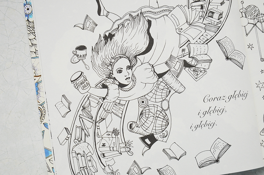 Tym razem Johanna zabiera nas w morskie głębiny. Oczywiście nie zabraknie tu elementów do znalezienia na ilustracjach, a nawet prawdziwego skarbu. Autorka zadbała również o to, abyśmy sami mogli coś stworzyć i dokończenie niektórych zdobień i wzorów pozostawiła w naszych rękach. Podoba mi się takie mobilizowanie czytelnika, ale przyznam, że niektóre kolorowanki zostawiam właśnie z tego względu, że boję się zacząć rysować i coś zepsuć. Może kiedyś najdzie mnie wena i niczym Johhana zabawię się w rysownika próbując swoich sił w jej książkach. Kto wie. Wam życzę świetnej zabawy przy tej kolejnej już i równie wyjątkowej co pozostałe książce Johanny Basford. To niezwykła, wrażliwa i delikatna kobieta o artystycznej duszy, która zachwyca swoimi dziełami cały świat!