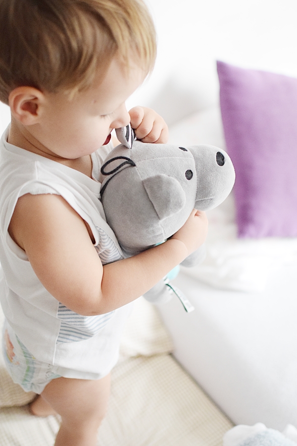 Co prawda Oluś ma już dwa latka i mogłoby się wydawać, że nie będzie to gadżet dla jego grupy wiekowej. Nic bardziej mylnego. Whisbear Szumiący Miś to nie tylko ukojenie i utulenie do snu maluszka dzięki białemu szumowi, ale również po prostu świetna zabawka i maskotka.