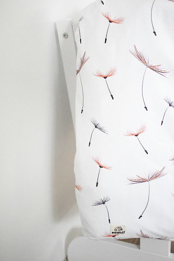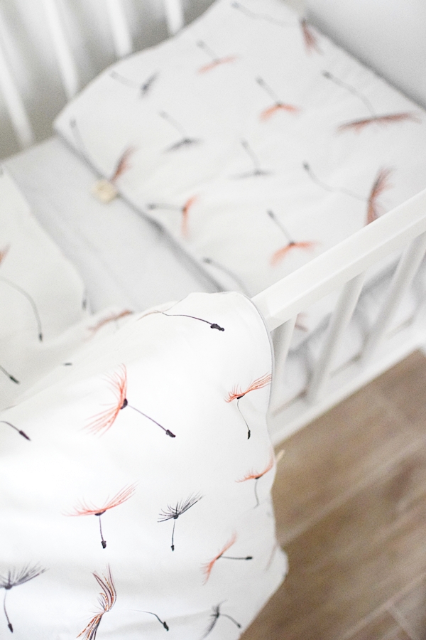 Oczywiście dla mnie jako mamy i kobiety bardzo ważna jest też estetyka pościeli. Nie lubię oklepanych wzorów, misiów, owieczek itp. Jak dla mnie są one infantylne. Zdecydowanie wolę delikatne nowoczesne wzory. Dlatego wybrałam właśnie Dmuchawce (dla Maleństwa – kołdra 70×100, poduszka 40×60 cm) i Puszyste chmury (dla Olusia – 100×135, poduszka 40×60 cm) – dwa niezwykle piękne wzory pościeli marki Maamut, które widzicie na zdjęciach.
