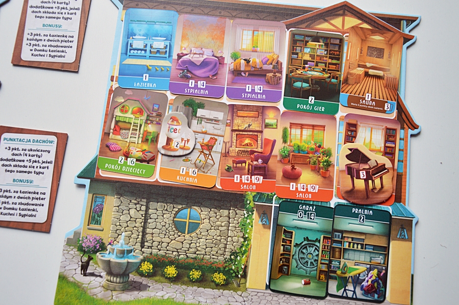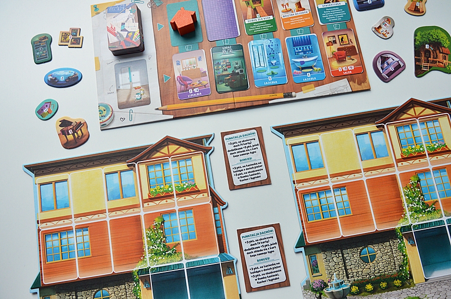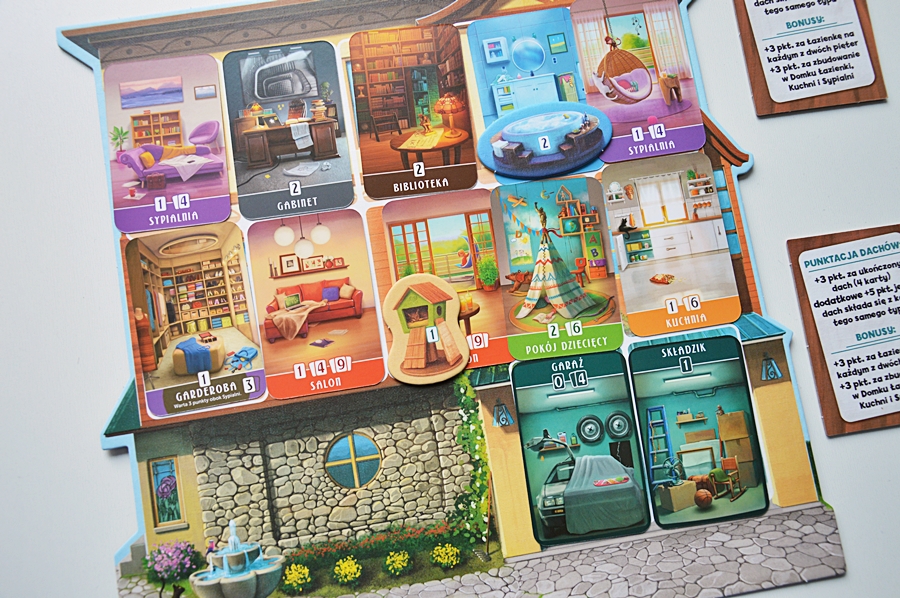 Karty pomieszczeń możemy łączyć w większe rozbudowane pokoje. Piętra mają charakterystyczne cechy. Do tego mamy jeszcze przedmioty dodatkowe, które możemy umieścić w określonych pokojach, aby zwiększyć ich wartość. Taki stopień rozbudowania gry oraz mechanizm jej działania pozostawia graczom spore pole do popisu. Każdy ma inny pomysł na swój dom. Każdy chce spróbować szczęścia i liczy na wylosowanie wartościowych kart narzędzi, wyposażenia i pomocników. W tej grze niczego nie można być pewnym Każda rozgrywka to masa frajdy z planowania swojego Domku jak i spora dawka adrenaliny podczas odkrywania i uzupełniania kolejnych kart na planszy.