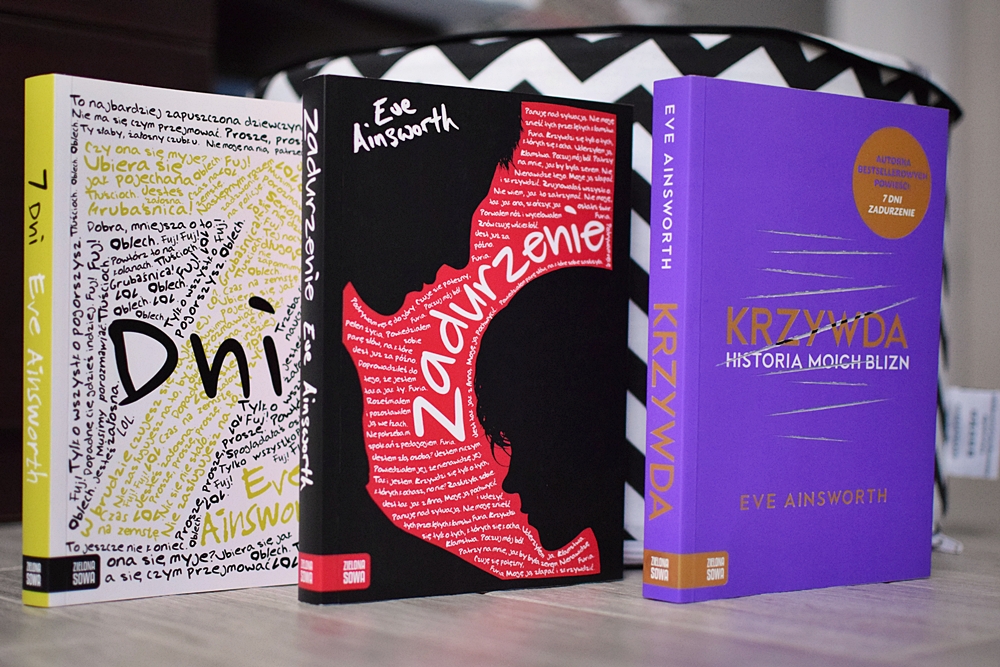 Jako dorośli mamy pełną świadomość problemów, które poruszyła Eve Ainsworth w swoich książkach. Jednak z punktu widzenia nastolatka wszystko wygląda inaczej. Początkowo czytając te książki myślałam, że powinni je czytać jedynie nastolatkowie a nie dorośli. Jednak teraz jestem innego zdania. Jako rodzicie szybko zapominamy o tym, kiedy to my byliśmy młodzi, gniewni lub zagubieni. Stajemy się swoimi własnymi rodzicami, a nasze dzieci twierdzą, że ich nie rozumiemy. Błędne koło. Ta lektura skłoniła mnie do przemyśleń i uświadomiła mi, że jeszcze niejednokrotnie będę musiała się cofnąć w czasie i przypomnieć sobie co czułam i myślałam jako dziecko lub nastolatka aby móc zrozumieć moje własne dziecko i pomóc mu kiedy zajdzie taka potrzeba.
