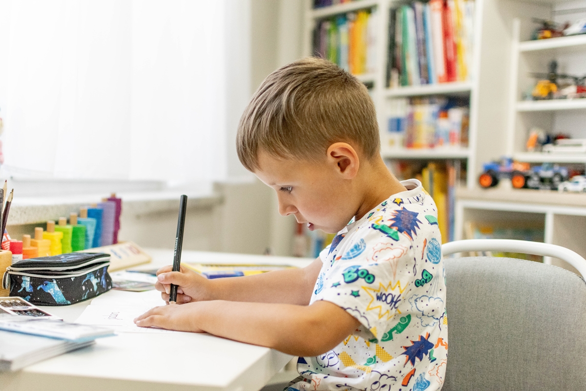Moje dzieci rysują, kolorują, malują i wycinają praktycznie codziennie. Wyprawkę papierniczą robimy więc podwójną i regularnie uzupełniamy jej zapasy. Nawet teraz w wakacje chłopcy nie rezygnują z zabaw plastycznych. Z tą różnicą, że zdarza nam się wystawiać stół i krzesła do ogrodu i tam Oli i Franio tworzą swoje pierwsze arcydzieła.