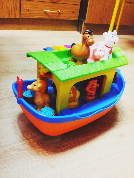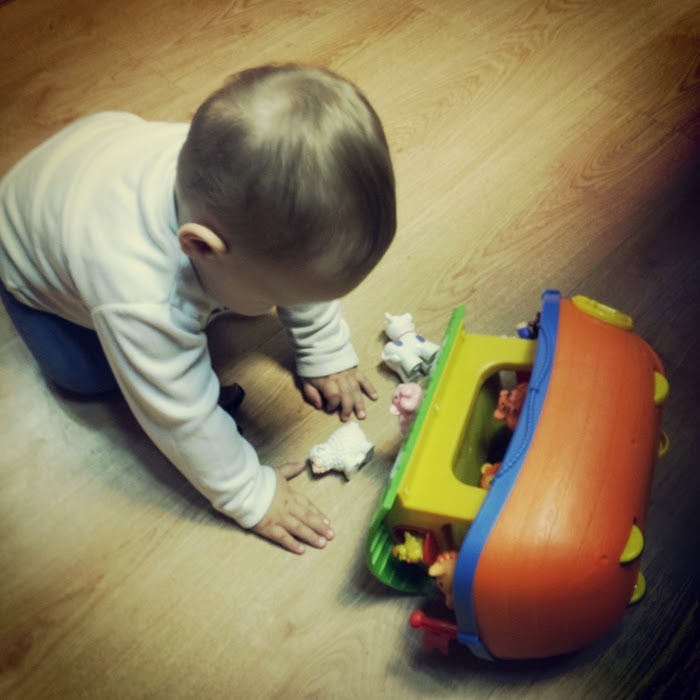 • jest bezpieczna nawet dla młodszych dzieci (Oli ma 10 miesięcy), arka nie posiada małych elementów, które dziecko mogłoby wyłamać a zwierzęta są zrobione w formie odlewu plastikowego, więc żadnej części nie można odłączyć