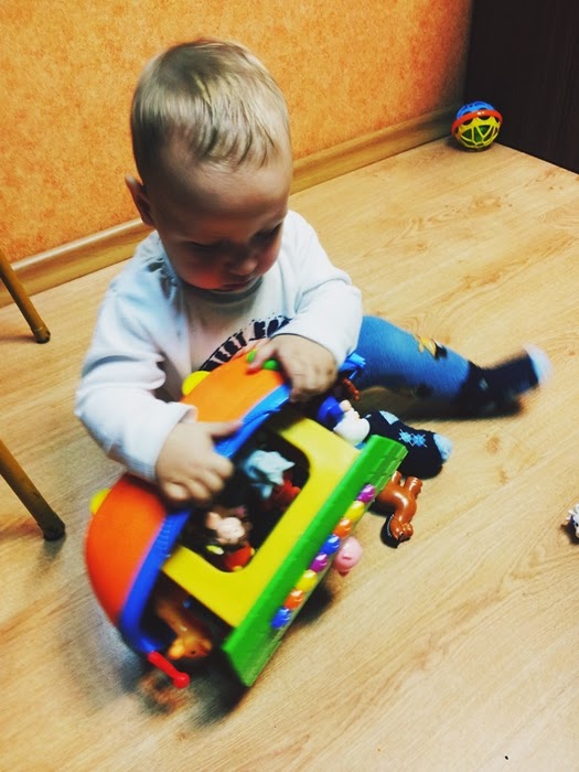 Czytałam w sieci sporo pozytywnych opinii na temat tej zabawki. Tak się złożyło, że babcia Olusia chciała mu sprawić prezent tak po prostu, bez okazji. Nie wiedziała co kupić, więc zapytała mnie, a ja wybrałam pozycję z listy „prezentów”.