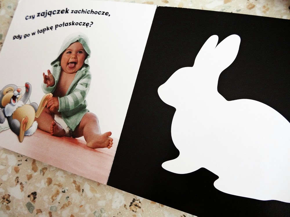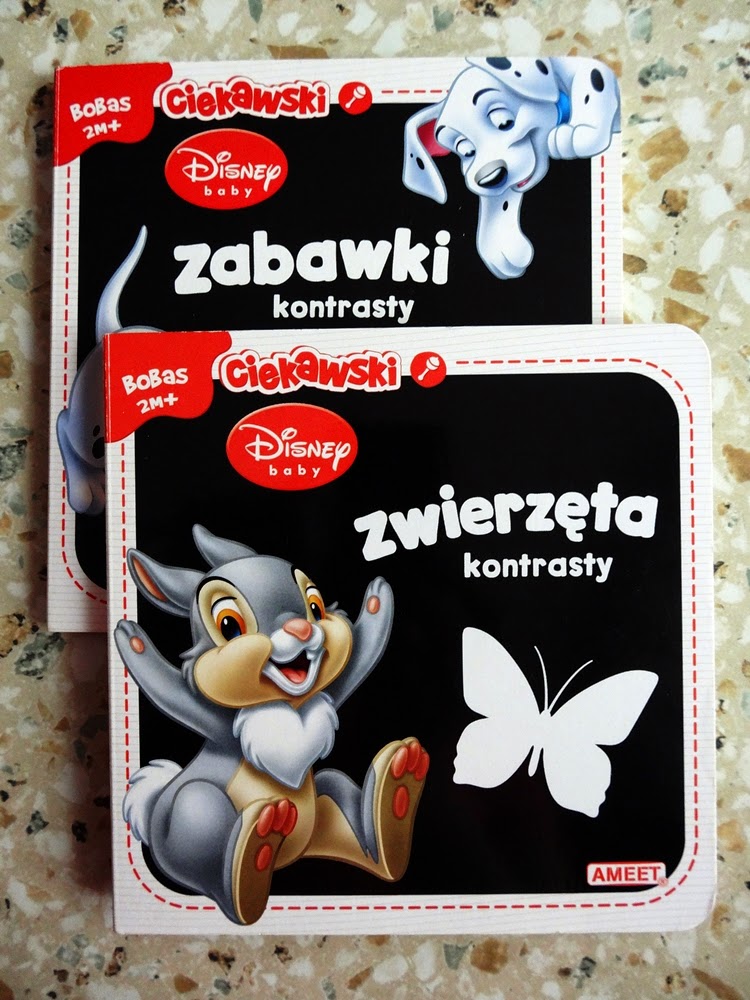 Te dwie książeczki były jednymi z pierwszych jakie zapiłam dla Olusia. Każdy z nas wie, że dziecko zaraz po urodzeniu nie rozróżnia kolorów, ba ono nie wiele widzi. Wszystko jest zamazane niewyraźnie. Pierwszymi barwami jakie widzi dziecko jest biel, czerń i czerwień. Dlatego też watro pokazywać mu przedmioty lub np. książeczki z ilustracjami w tych kolorach aby stymulować rozwój jego wzroku. Książeczki dedykowane są dla dzieci od ukończenia drugiego miesiąca. My korzystaliśmy z nich troszkę wcześniej. Solidne wykonanie pozwala na to by dać tą książeczkę w rączki nawet dla maluszka, który się ślini i wkłada wszystko do buzi. U nas już trochę one są i nie widać żeby były zniszczone. Oczywiście mają lekko sfatygowane rogi i zgięcie na grzbiecie ale to wynik tego, że nie leżały na półce a umilały Olusiowi czas.