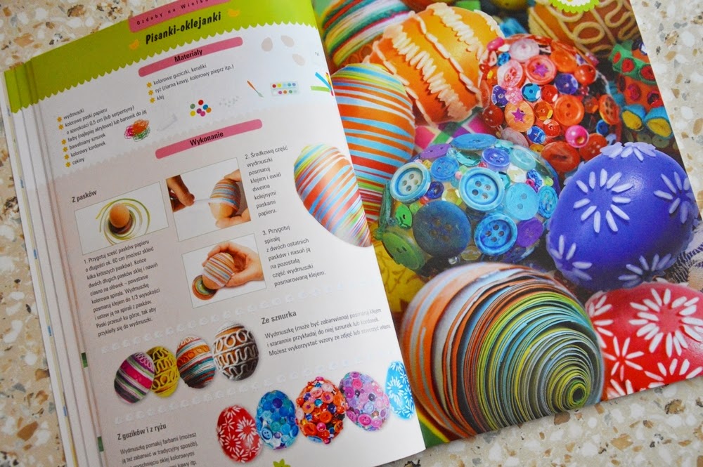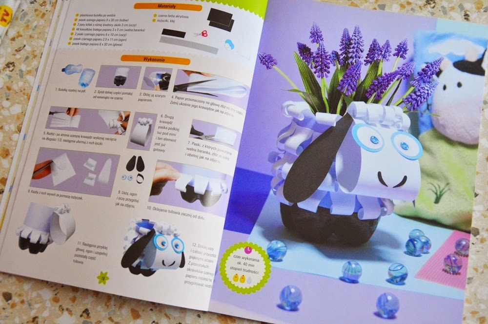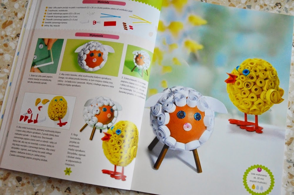 Jeszcze z dzieciństwa pamiętam podobne książki. Uwielbiałam przygotowywać według instrukcji w nich zawartych piękne ozdoby świąteczne, pudełka, zabawki i wiele innych ciekawych prac plastycznych. Taka już moja natura, że od małego rękodzieło było mi bardzo bliskie. Zapewniam Was, że dzięki tej książce poczujecie iście wiosenną atmosferę.
