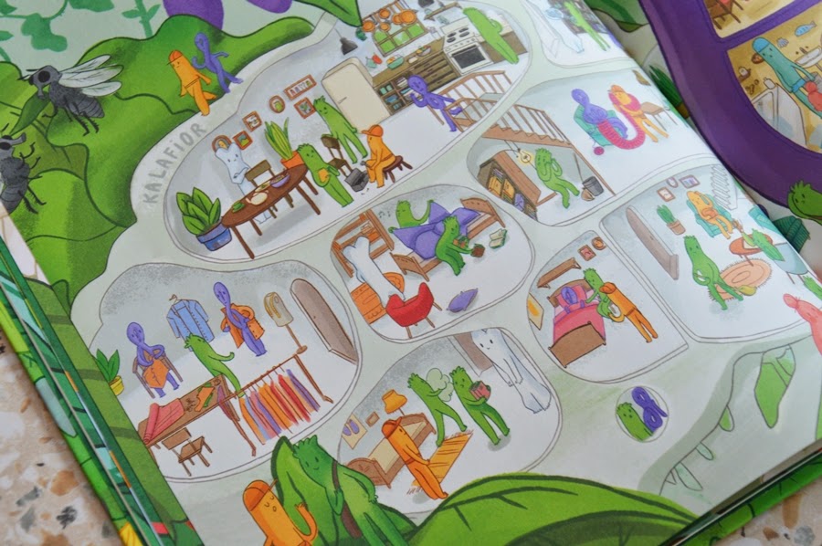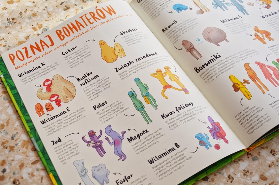 Witaminom i innym substancjom odżywczym autorka nadała cechy ludzkie, więc na ilustracjach możemy zobaczyć jak sprzątają, jedzą czy pracują. Bardzo dużym atutem książki jest jej rozmiar, większy od formatu A4. Już nawet Olusia ciekawią ilustracje z tak dużą ilością szczegółów.