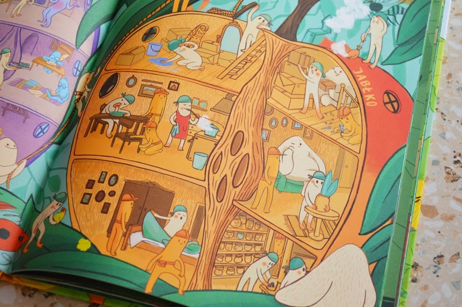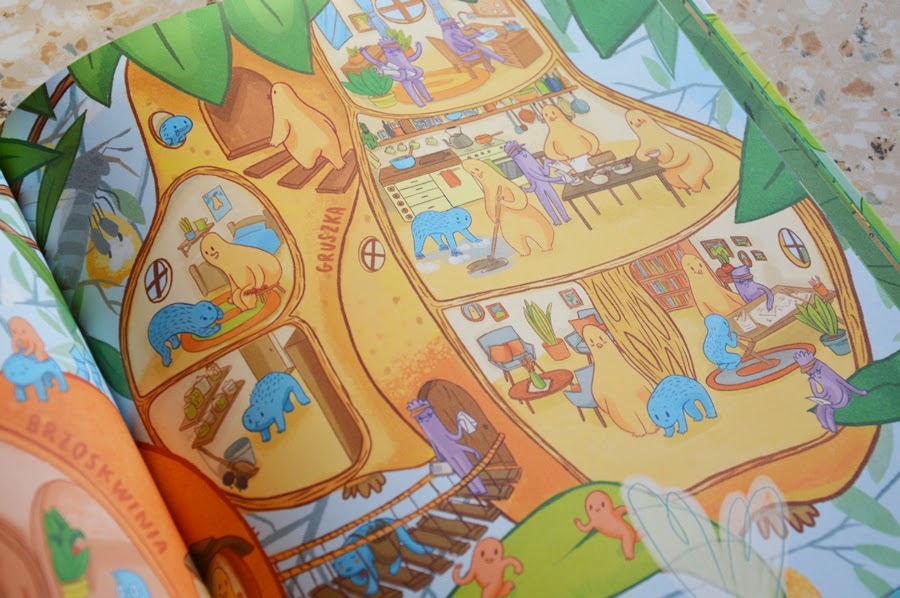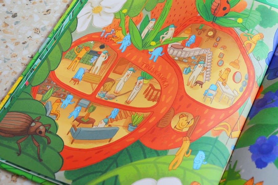 Wyjątkowa, niekonwencjonalna, zaskakująca. Tak opisałabym pierwsze wrażenie po obejrzeniu tej książki. Tak, obejrzeniu. Nie znajdziecie tu zbyt dużo tekstu. Jedynie wierszowany wstęp, opis bohaterów oraz nazwy owoców i warzyw na ilustracjach. Już okładka zaciekawia, a kiedy zajrzycie do środka, będziecie nią zachwyceni.