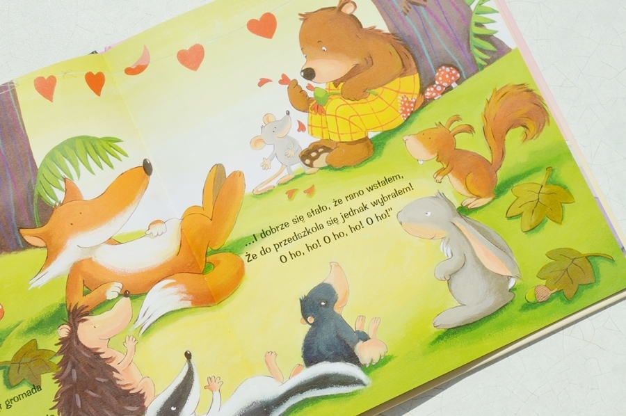 Ta pozycja jest przez Olusia rozchwytywana ostatnimi czasy. Przegląda ją we wszystkie strony. Nawet do góry nogami! Nic nie pomaga poprawianie pozycji książki, bo on uparcie ją obraca po swojemu. Eh, ważne, że śmieje się przy tym i gada coś po swojemu do misia.