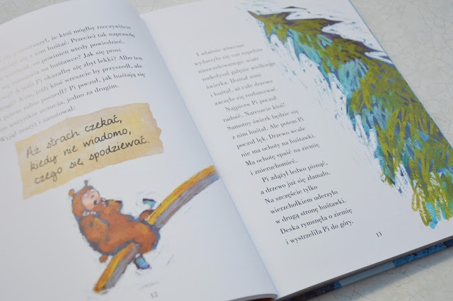 Już na pierwszy rzut oka widać, że nie jest to standardowa bajka z klasycznymi ilustracjami. Jest to książka, która w metaforyczny, acz zrozumiały dla dziecka sposób, przedstawia wiele problemów z jakimi może zetknąć się dziecko w otaczającym go środowisku. Nie jest ona przepełniona tekstem. Bardzo ważną rolę odgrywają tu wręcz artystyczne ilustracje. Zapraszam Was do świata Pi.