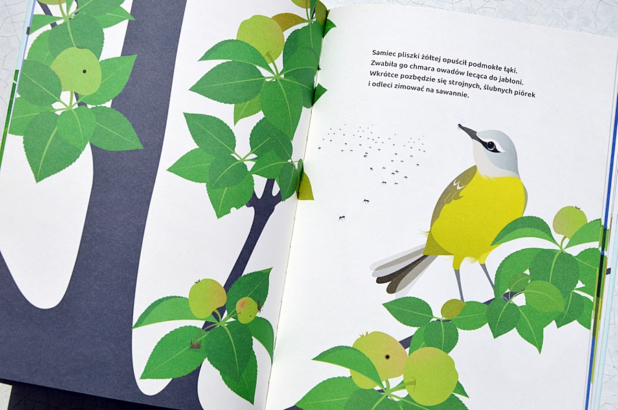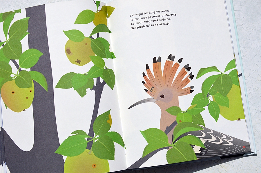 Nie można też przejść obojętnie wobec (co prawda skromnego) tekstu, który w sposób minimalistyczny, ale bardzo merytoryczny pokazuje dziecku przemijalność i cykliczność pór roku. Nie jest to łatwe zagadnienie do zrozumienia dla dzieci. Warto na różne sposoby przybliżać im działanie sił natury. Mi ten specyficzny sposób Anne Crausaz przypadł do gustu. Zdecydowanie książka 52 tygodnie jest dla starszych dzieci niż Oli, ale nawet jeśli skusicie się kupić tę książkę, mając w domu dwulatka (jak ja) to dla Was samych jej lektura będzie wielką przyjemnością i miłym doznaniem estetycznym.