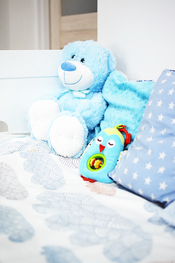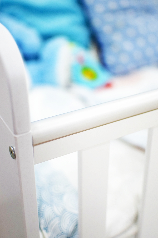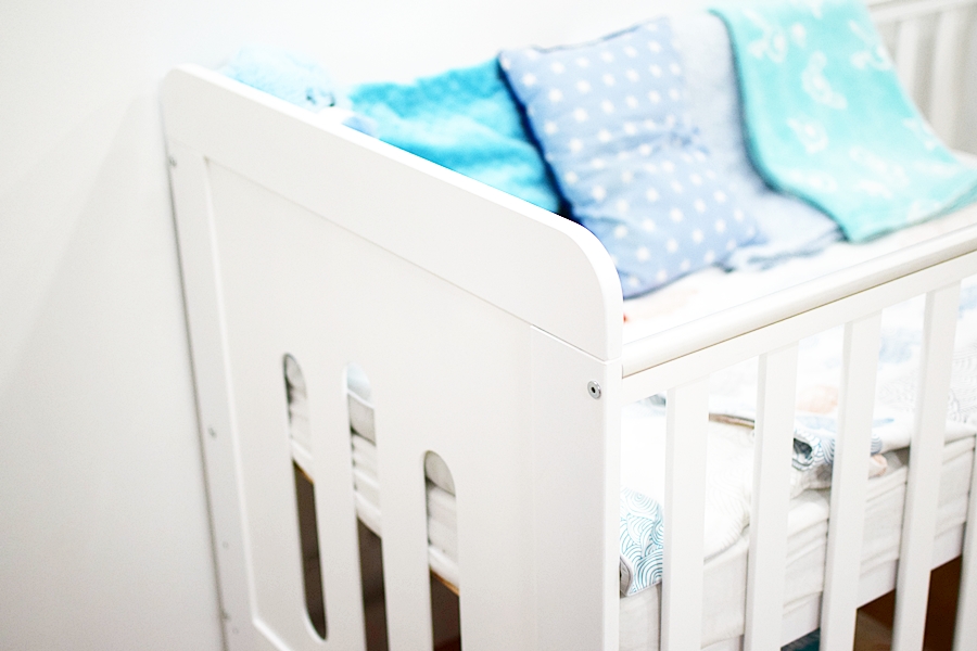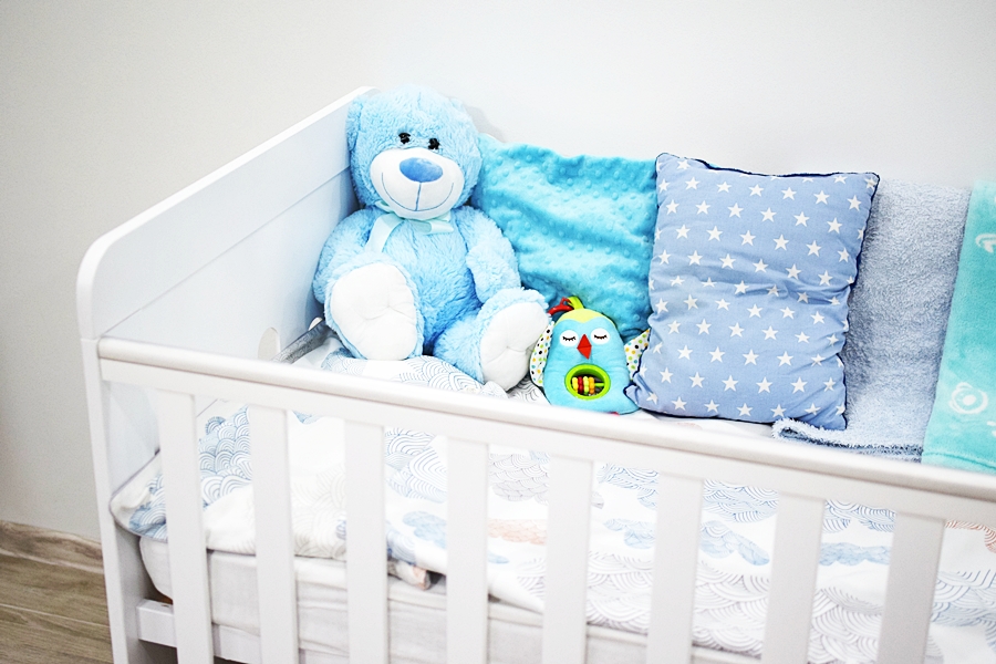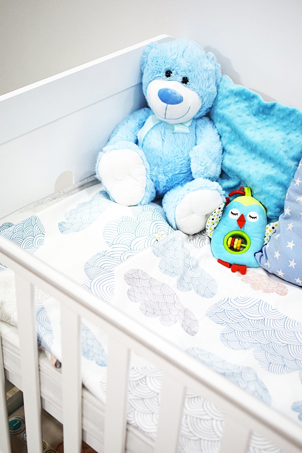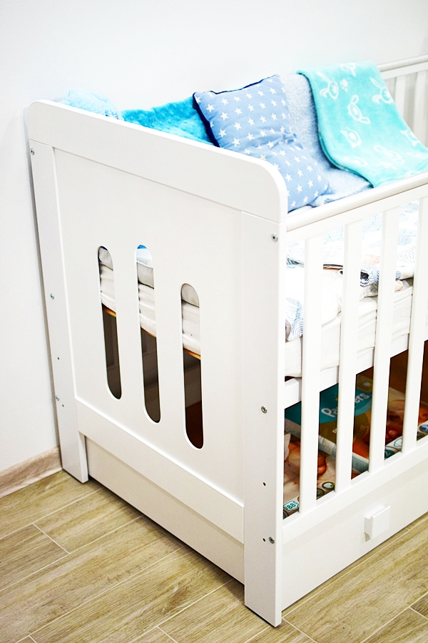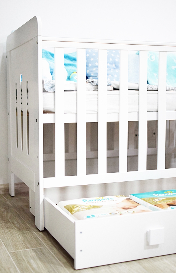 • Szuflada – miejsca na przechowywanie nigdy za wiele. Wie o tym dobrze każdy rodzic. Ja wykorzystuję szufladę pod łóżeczkiem jako miejsce na dodatkowy komplet pościeli, pieluszki i zapas artykułów higienicznych takich jak płatki kosmetyczne, podkłady czy pieluszki tetrowe.