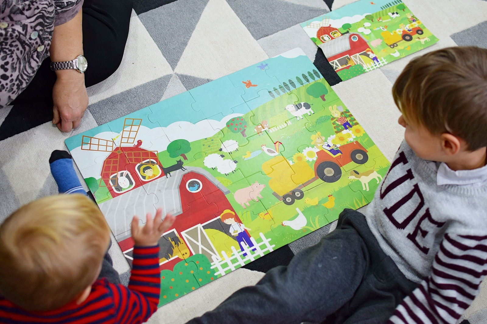 Bardzo fajny zestaw puzzlli dla dzieci z dość prostą grafiką i bardzo dużymi grubymi elementami. Doskonały do układania na dywanie lub podłodze w rodzinnym gronie. Przedstawia życie na wsi i zwierzęta jakie możemy tam spotkać. Praktyczne pudełko dołączone do puzzli to bardzo fajny dodatek i swojego rodzaju „wisienka na torcie”.