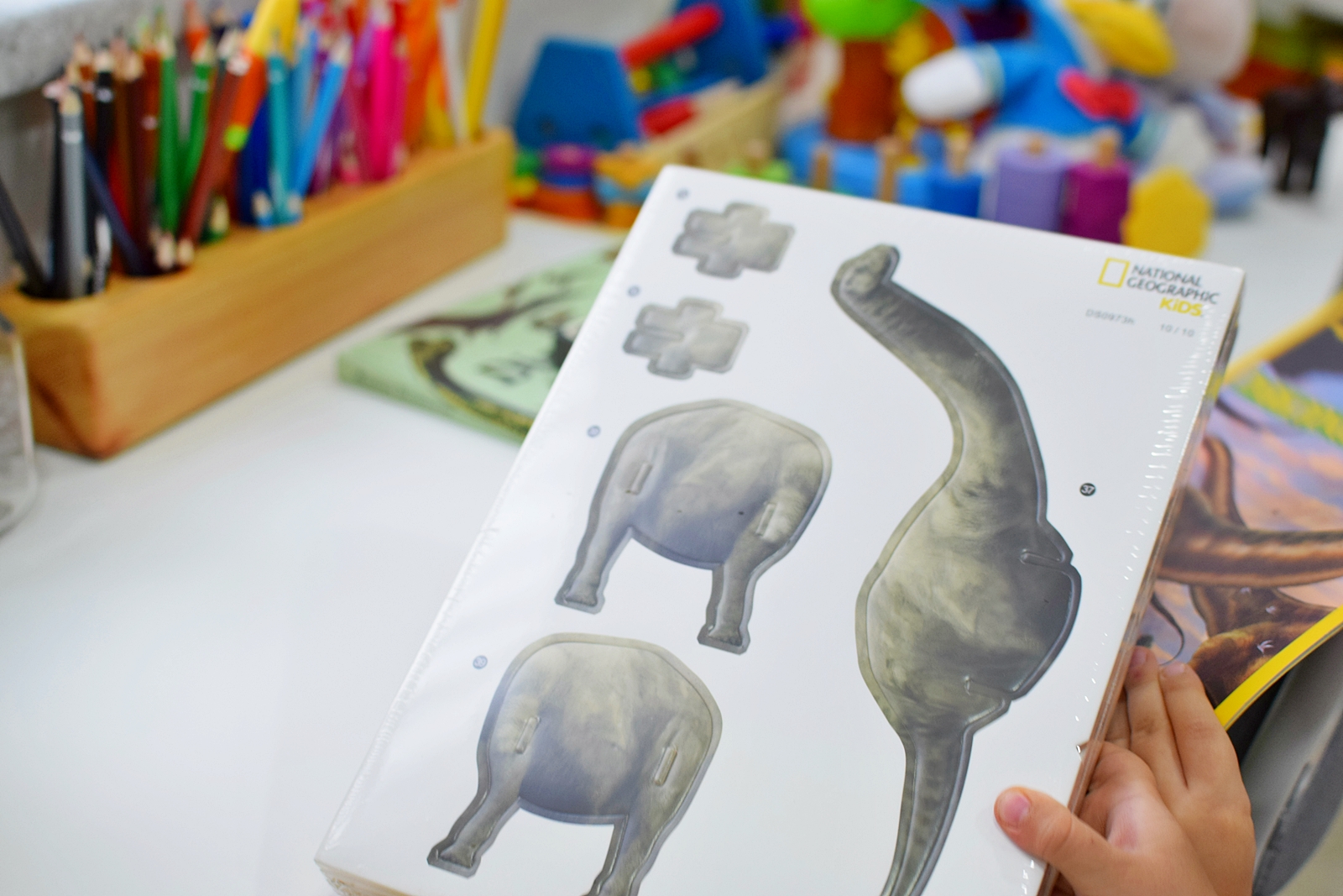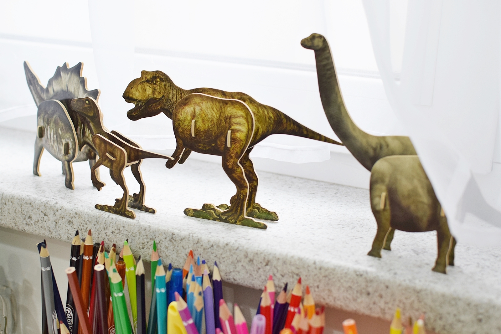 Przestrzenny model przedstawiający dinozaury w ich naturalnym środowisku. Bardzo grube i wytrzymałe kartonowe elementy, realistyczne ilustracje i naprawdę pokaźnych wymiarów elementy. Bardzo ciekawa propozycja. Daje wielką frajdę nie tylko podczas składania ale również później podczas zabawy modelami.
