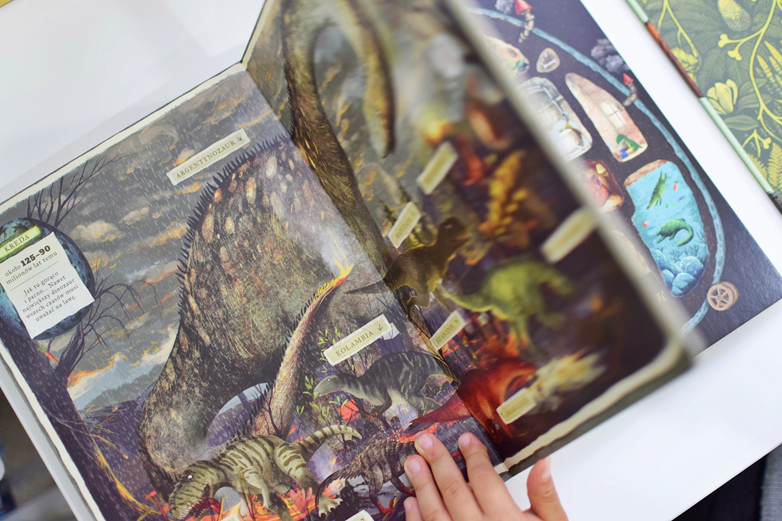 Dwie genialne książki o dinozaurach! Po prostu trzeba je zobaczyć! Na żywo robią jeszcze lepsze wrażenie. Niesamowicie ilustrowane, wielkoformatowe i przygotowane z ogromną wyobraźnią i rozmachem. Zachwycają i wciągają na długi czas.
