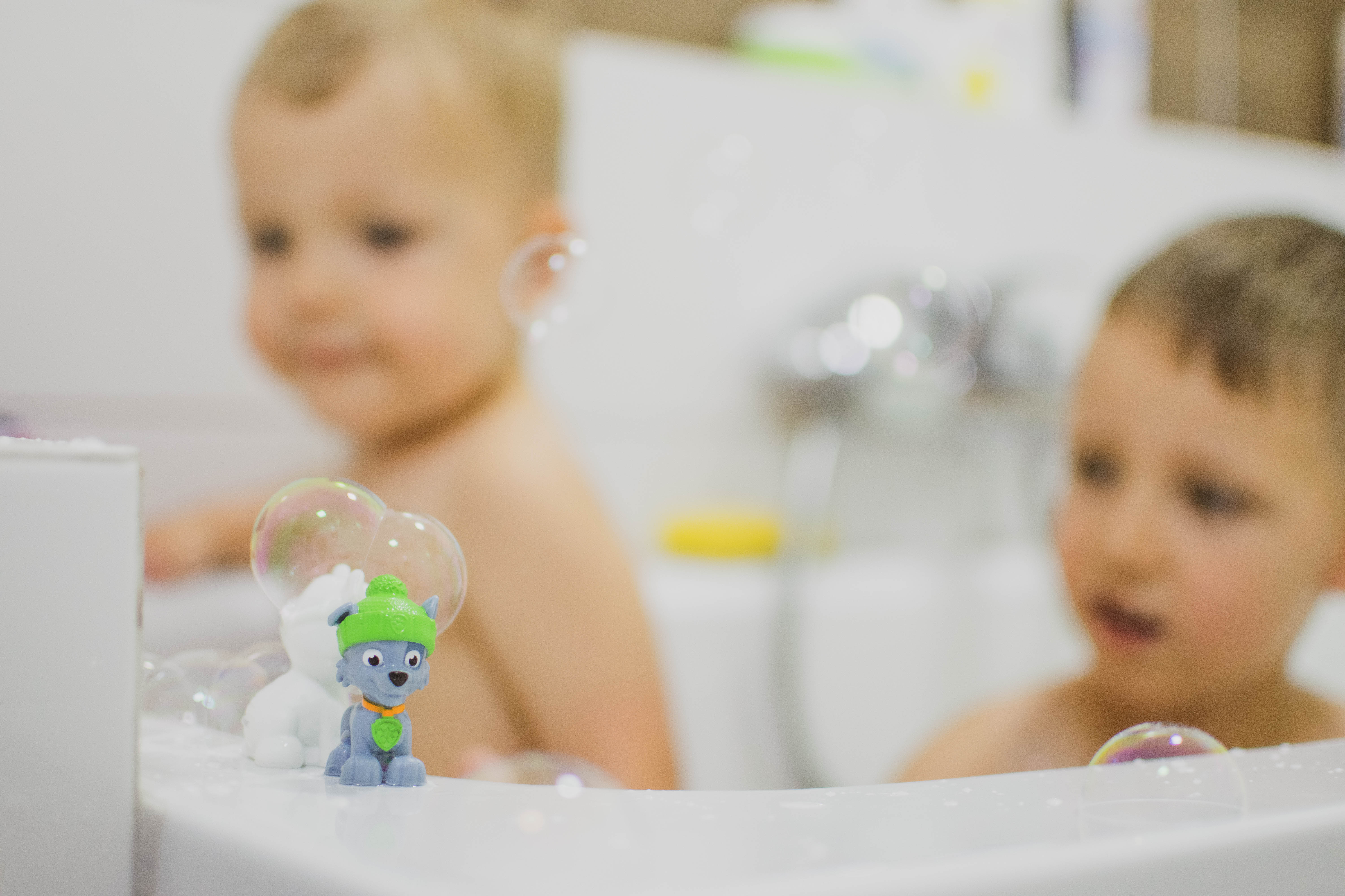 Zdarzają nam się szybkie kąpiele, ale do dziś jest to zazwyczaj okazja do wspólnej zabawy. Często chłopcy puszczają w wannie bańki, lepią pianostwory czy bawią plastikowymi zabawkami.