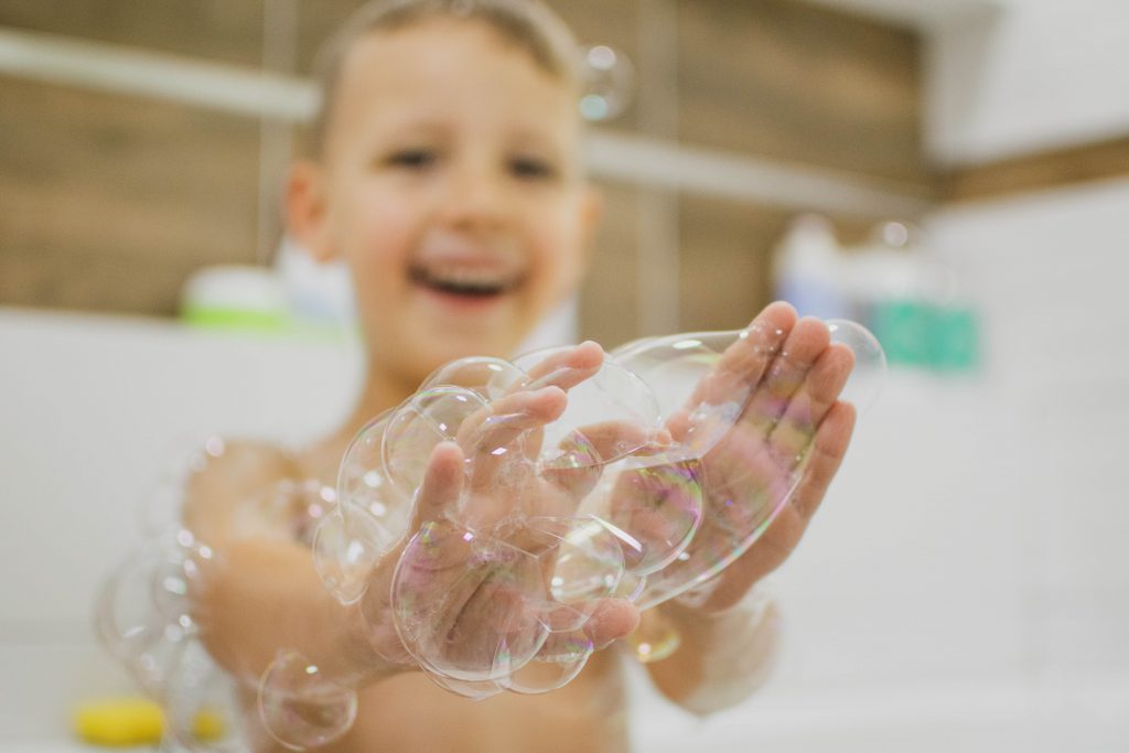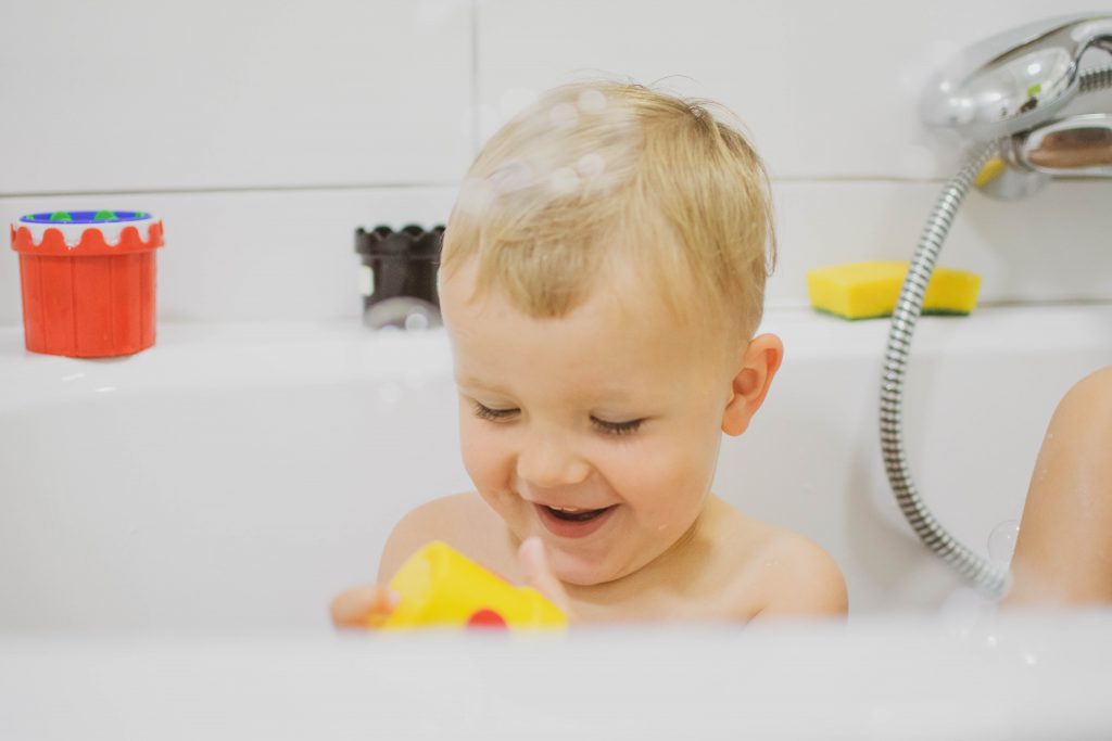 Uwielbiam kąpiele, moje dzieci również, ale początki nie były łatwe. Jeden wolał cieplejszą a drugi chłodniejszą wodę. Wydawałoby się, że to tylko mycie ciała. Dla dziecka to coś więcej. To okazja do zabawy, czułości, bliskości i nawiązywania więzi. Najpierw szykowałam wszystko co potrzebne i zabierałam do łazienki. Podnosiliśmy w niej lekko temperaturę na czas kąpieli. Wlewałam wodę do wanienki i mogliśmy zaczynać. Rozbieranie, mycie, smarowanie ciała oliwką (według potrzeby), zakładanie pieluszki i ubieranie.