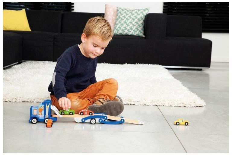 Jeżeli prezentem na Gwiazdkę ma być auto – niech będzie to laweta z czterema wyścigówkami na pokładzie marki Scratch! Auto z lawetą to zabawka wielofunkcyjna: może służyć po prostu do transportowania mniejszych samochodów, a po rozłożeniu stać się długą rampą, z której wyścigówki będą startować z dużą prędkością. Doskonała jakość materiałów, trwałość i odporność na uszkodzenia mechaniczne to gwarancja, że zabawka posłuży dziecku przez wiele lat.