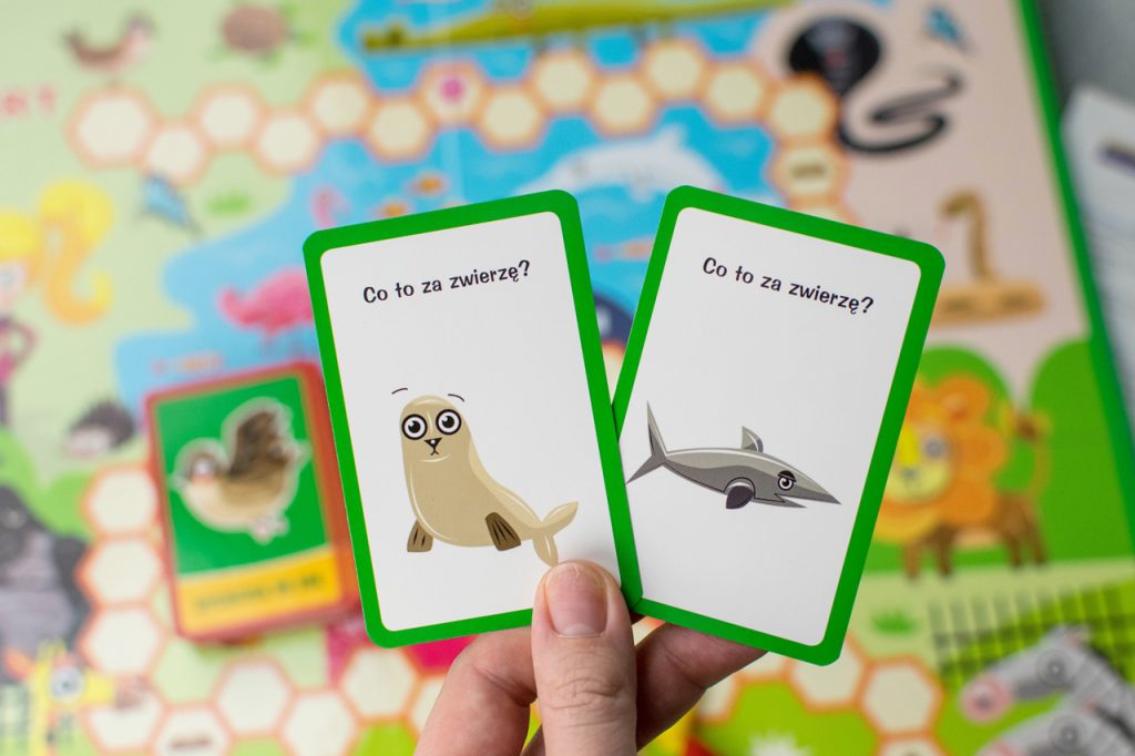W tę grę gramy już od dawna. Pierwszy raz „zaskoczyła” Kiedy Oli miał jakieś 4 lata. Co prawda modyfikowałam wtedy odrobine jej zasady ale grunt, że sprawiała wiele frajdy dziecku, ćwiczyła spostrzegawczość i nauczyła Olka kilku nowych nazw zwierząt, których wcześniej nie znał. Pozytywnie zaskakuje różnorodność kart, które nie tylko pytają o nazwę zwierzęcia na obrazku, ale również ćwiczą logicznego myślenia poprzez polecenia typu: „Wymień 3 zwierzęta, które można spotkać nad jeziorem lub rzeką” lub „Wymień 2 zwierzęta na literę L.”