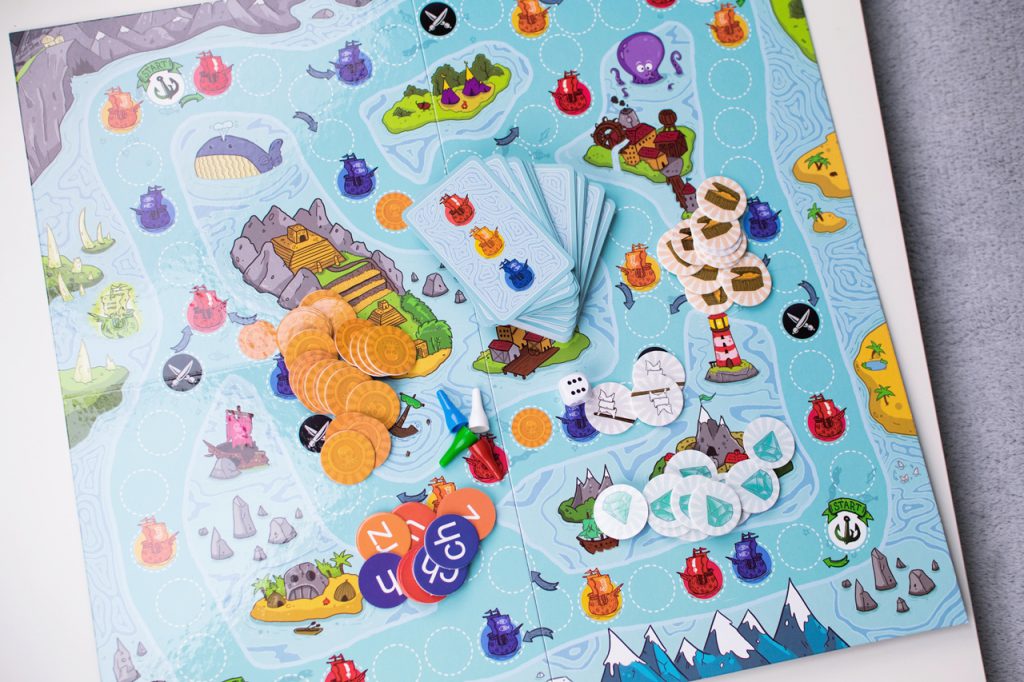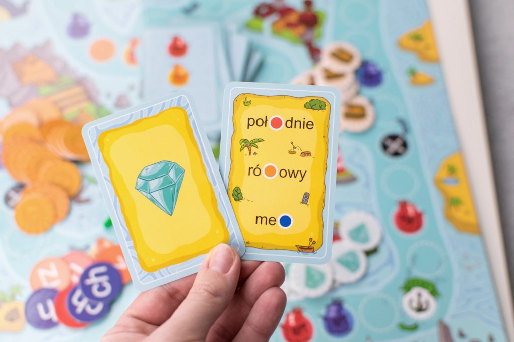Wyrusz w morską piracką przygodę. Żegluj między skalistymi brzegami by znaleźć jak najwięcej skarbów. Uwaga! Nie będzie to takie proste, na drodze staną rozmaite zagadki ortograficzne. Barwne, stonowane i pełne detali dwie plansze do gry skutecznie zachęcają do zabawy połączonej z nauką. U nas jeszcze chwila na nią ale już nie mogę się doczekać wspólnych rodzinnych rozgrywek.