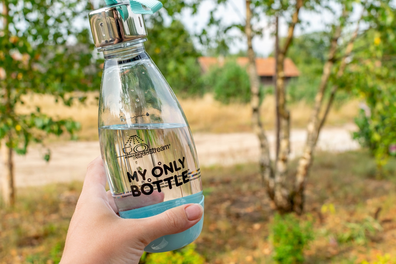 Zaprojektowana przez markę SodaStream, ekologiczna butelka na wodę My Only Bottle to praktyczne rozwiązanie. Sprawdza się na co dzień, szczególnie poza domem. Dodatkowa pętla zamocowana przy zakrętce pozwala zawiesić ją na nadgarstku. Dzięki czemu mam wolne obie ręce (takie rozwiązanie przy trójce dzieci to złoto!) Można ją myć w zmywarce. Jest kompatybilna z urządzeniami Soda Stream, np. z ekspresem SodaStream Spirit Mint.