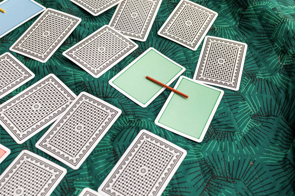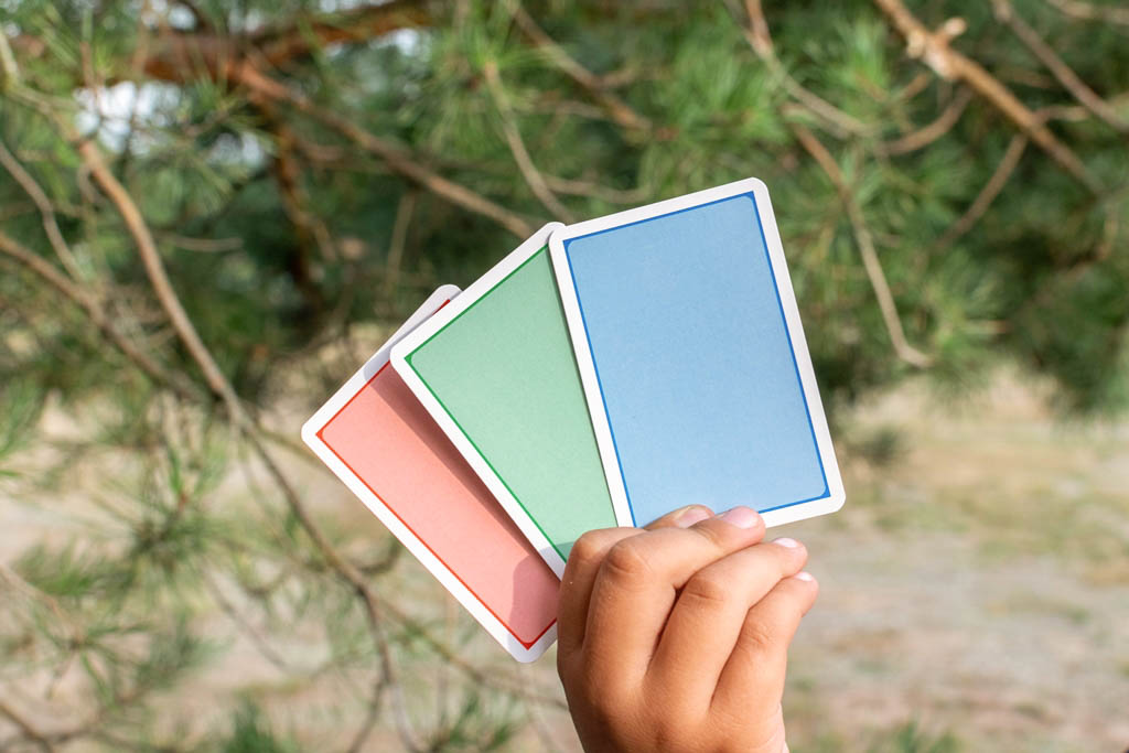 Karty pod kątem technicznym łudząco przypominają klasyczne talie do gry w karty, zaś różnią się od nich szatą graficzną. Nie posiadają one bowiem żadnych znaków czy obrazów, posiadają jednolite kolory.
